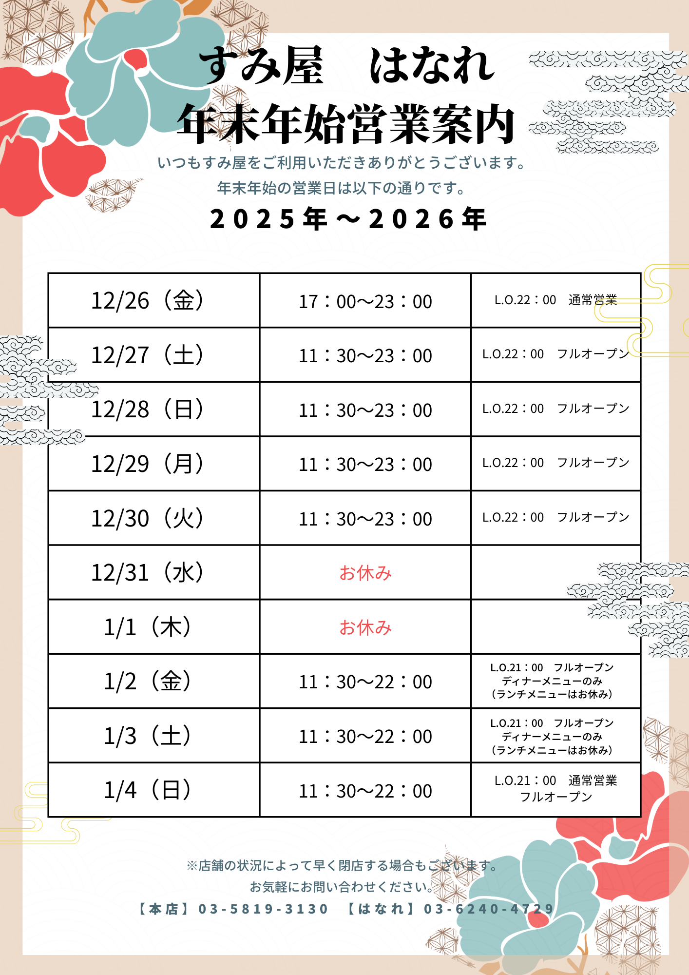 本店phone03-5819-3130 / はなれphone03-6240-4729
